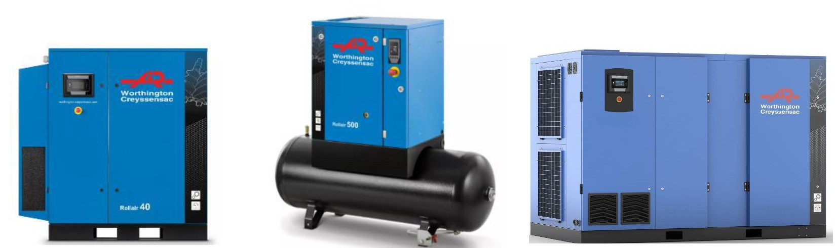 Los compresores accionados por correa de Worthington Creyssensac están equipados con una correa diseñada internamente que conecta el motor eléctrico —que funciona a velocidad fija— con la bomba del compresor mediante poleas. Este diseño ofrece una mayor flexibilidad para ajustar el caudal de aire y la presión según las necesidades.